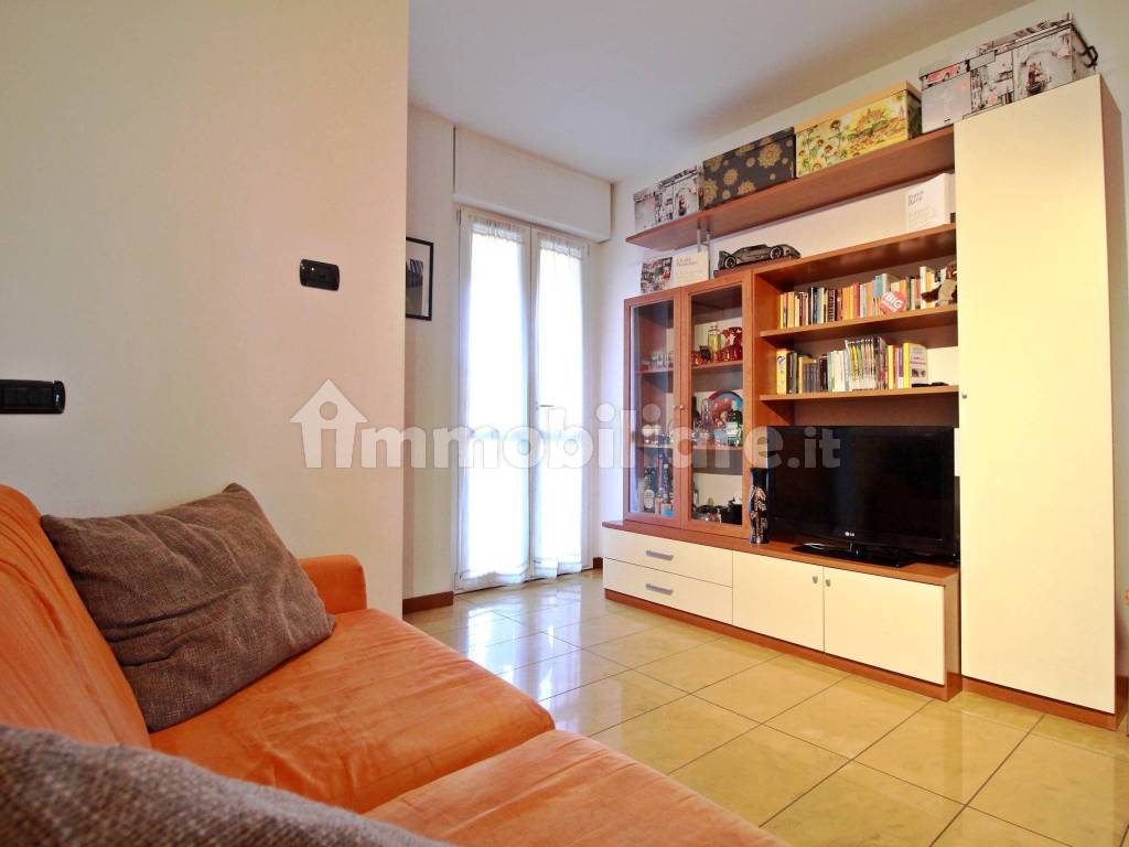 Ingresso direttamente nel soggiorno/zona notte dotato di ampio balcone coperto, cucina semi-abitabile con terrazzino, disimpegno e servizio finestrato.