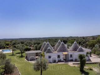 Immerso in un contesto paesaggistico unico, circondato dalle dolci colline della Valle d’Itria, proponiamo un affascinante complesso di trulli completamente ristrutturato che si sviluppa su un terreno collinare di oltre tre ettari. L’accesso alla proprietà avviene tramite un cancello elettrico che immette su un caratteristico vialetto privato incorniciato da ulivi e macchia mediterranea, conducendo a una comoda area parcheggio adiacente alle due unità immobiliari.