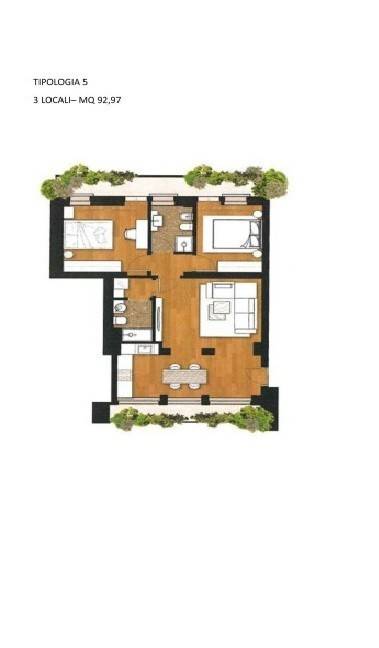 L’appartamento si compone di un’ampia zona living con angolo cottura e di due camere da letto, entrambe accessibili tramite comodo disimpegno, oltre ai doppi servizi. Completa la soluzione un’area esterna con fioriere, che conferisce ulteriore valore e cura agli spazi.Grazie alla distribuzione efficiente, viene valorizzato ogni ambiente evitando dispersioni di superficie e massimizzando la fruibilità degli spazi.