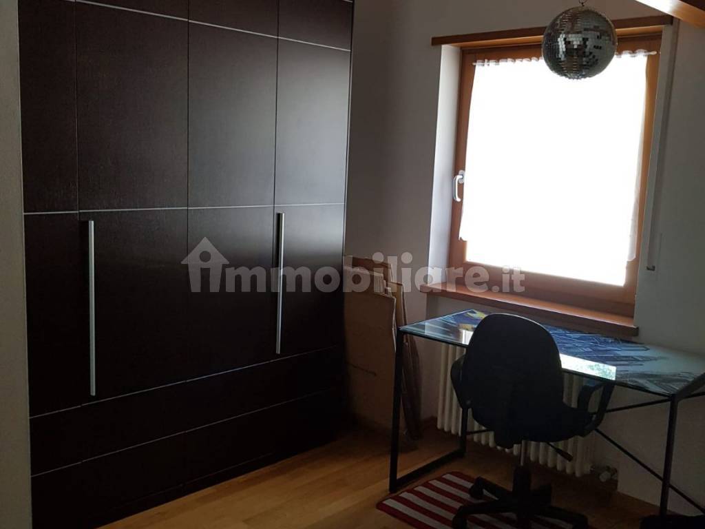 Condominio residenziale Le Querce che si trova immerso nel verde con un parco di fronte e dintorni vari sentieri da percorrere . Il condominio con l'accesso limitato solamente ai residenti è sempre pulito con un ascensione funzionante. L'appartamento mansardato è molto ampio in altezza ed è dotato di due velux , uno grande nel angolo cottura e l'altro nel bagno. Il balcone e accessibile sia dalla camera da letto sia dal soggiorno. Un lungo corridoio dove è presente anche un ripostiglio collega le due camere da letto , bagno, soggiorno e angolo cottura. La porta di ingresso è blindata con un sistema di chiusura sofisticata De Gasperi.