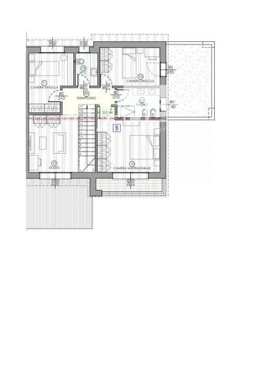 Salendo le scale si arriva al piano superiore, che ospita la zona notte formata da una camera matrimoniale con accesso ad un ampio terrazzo affacciato sul giardino, perfetto per momenti di relax all'aperto, due camere singole, una quarta camera utilizzabile anche come studio, e due bagni pensati per offrire il massimo comfort a tutta la famiglia.