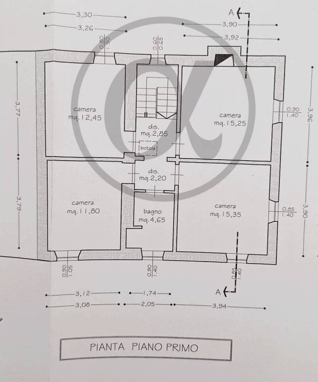 Salendo al primo piano troviamo ben quattro camere: due ampie matrimoniali e due camere doppie servite da un bagno finestrato.