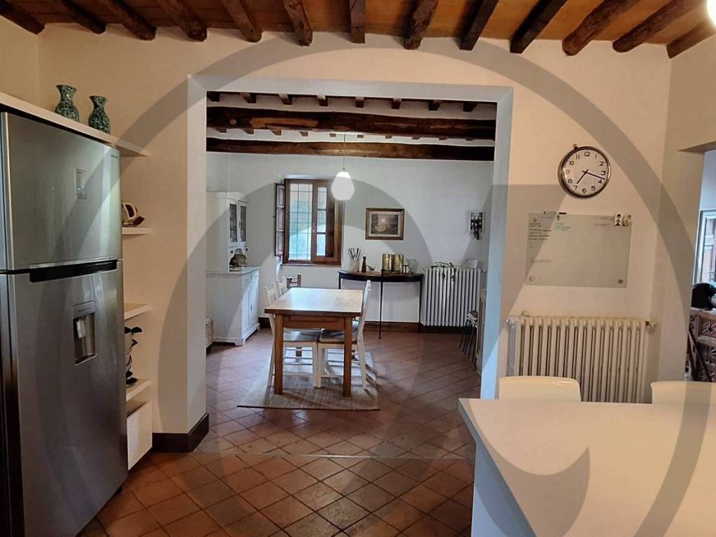 Ci accoglie in entrata un comodo vano d'ingresso dal quale si ha accesso a tutte le stanze del piano terra e alla scala (in pietra originale) di collegamento con il piano superiore.