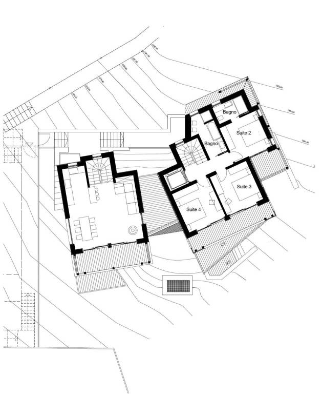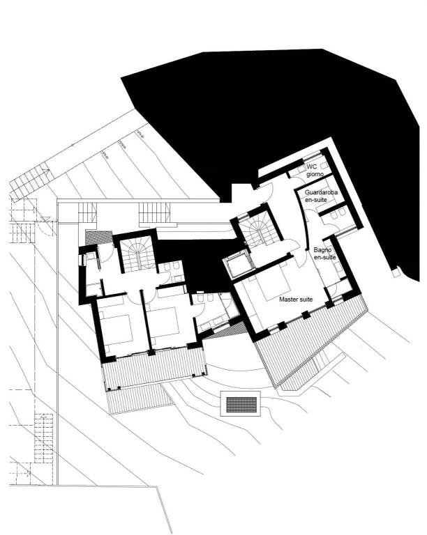 Ai piani sottostanti si trova la zona notte, divisa con tre eleganti camere da letto e due bagni raffinati. Da tutte le stanze è possibile accedere ad un balcone con vista sulle Dolomiti. La camera padronale con bagno en suite si trova su un piano dedicato ed è impreziosita da una cabina armadio. Al piano terra troviamo inoltre un bagno giorno per gli ospiti.