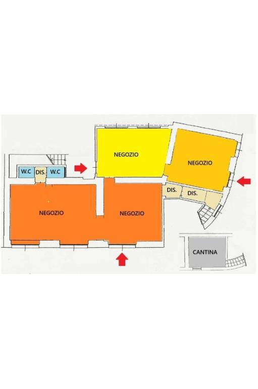 Posizionato ad angolo, dispone di quattro vetrine su due diverse strade, e si compone di 3 ambienti separati oltre al bagno di servizio ed una spaziosa cantina al piano seminterrato collegata da scala interna.
