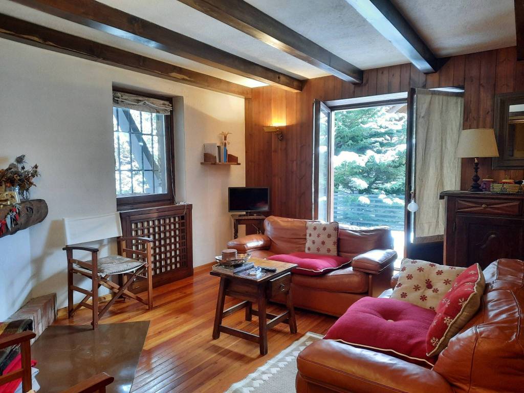 In vendita luminoso appartamento con vista sul Monte Bianco a due passi dagli impianti sciistici della Val Veny. L'appartamento di circa 100mq ad oggi è così suddiviso: ingresso su disimpegno, cucinotto, ampia zona giorno suddivisa in area pranzo e soggiorno con camino e accesso diretto al giardino di pertinenza in uso esclusivo. Zona notte composta da camera matrimoniale, camera doppia dalla quale si accede ad una terza stanza, un bagno. Completano la proprietà il Box Auto privato e la cantina.