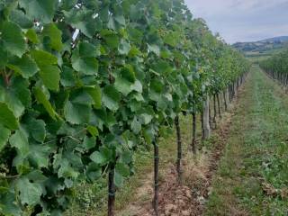 l terreno è coltivato a vigneto (piantato nel 2018) della varietà Pinot Grigio, 1900 viti e un frutteto, cca ½ piantagione di pesche, per una superficie totale di 11.600 m²