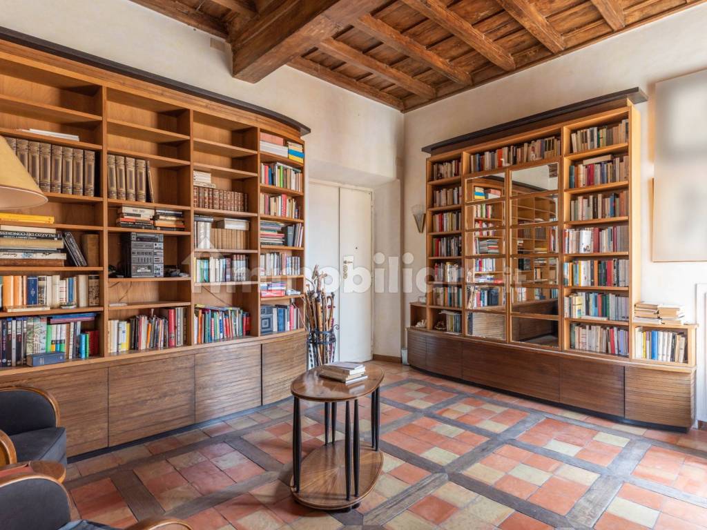 L’appartamento ha un ampio ingresso, un salone ed una grande camera da pranzo, la cucina è abitabile e dispone di un piccolo bagno. L’immobile comprende due camere da letto con due bagni. I soffitti a cassettoni in legno, la pavimentazione in cotto impreziosita da inserti in parquet grezzo e le ampie porte-finestre della zona giorno conferiscono agli ambienti un’ariosità paragonabile a quella di una terrazza. Grazie all’eccellente esposizione a sud, la luce naturale inonda gli spazi, rendendoli particolarmente luminosi e accoglienti. Questi elementi rappresentano i veri punti di forza della proprietà.
