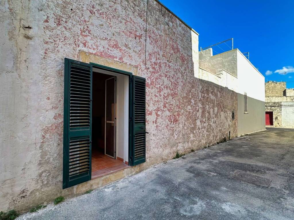 La scala in pietra che dal patio si inarca verso ponente, libera a metà del suo slancio una terrazza a livello che fa da preludio ad una stanza voltata a stella, spazio di tenerezza e di umanità infinita, dove si raccolgono forme e armonie della tradizione, mentre la fantasia rimuove in un attimo la porta e la finestra di indole levantina, per lasciare posto ad un’unica vetrata, con la stessa naturalezza con cui il cielo azzurro scivolerebbe nella stanza attraverso la losanga cesellata al centro della volta. Gli ultimi gradini in direzione della terrazza scandiscono il tempo necessario per aprire la mente ed il cuore alla meraviglia del paesaggio circostante, tra mura antiche e cornicioni temprati dal sole, che ancora accompagnano la danza giovane di lenzuoli ricolmi di vento. Così respira e cresce il legame famigliare tra la nostra vita e la simbolica di questo luogo, campo di gioia che rimescola le ore e libera la percezione sacra della luce e della vita.