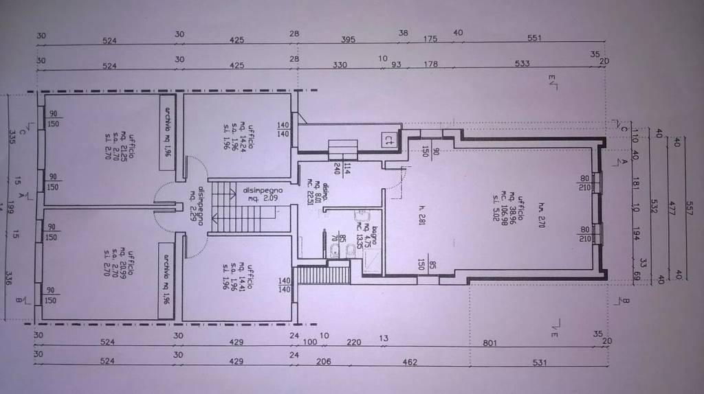 piano primo: 5 uffici, bagno, disimpegno, zona angolo cottura, poggiolo € 340.000 rif. 274