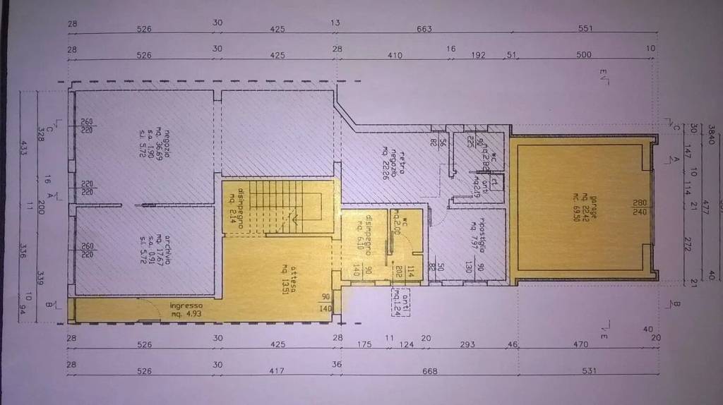 piano terra: ingresso indipendente, sala attesa, disimpegno, bagno, garage di 22 mq. con accesso carraio indipendente dalla parte posteriore del fabbricato.