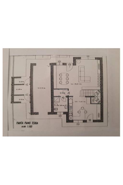piano terra - soggiorno di mq. 35 - cucina di mq. 17 - bagno - ampio garage - locale tecnico;