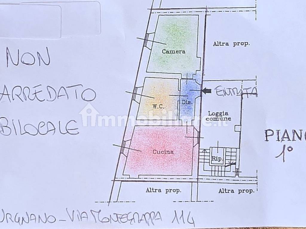 ampio bilocale, non arredato, mq. 70, composto da : n. 1 cucina, n. 1 camera da letto, n. 1 bagno ,luminoso, servitissimo, in centro paese, termo autonomo, piano primo, attacco internet, si animali domestici, doppi vetri, porta blindata, posto auto nelle vicinanze, bagno finestrato. Certificazione elettrica. Certificazione idraulica. Certificazione energetica classe G ipe 315,47