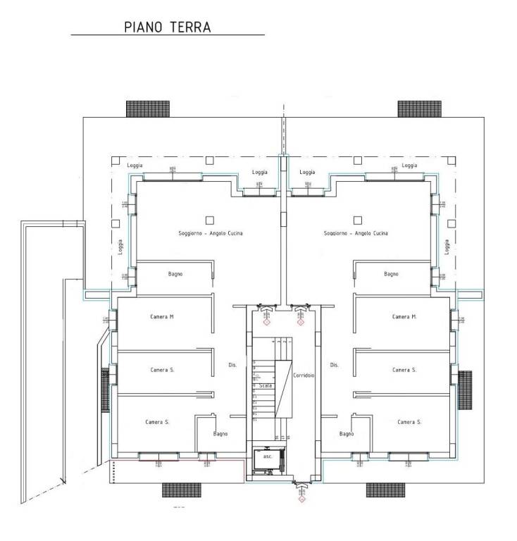 L'appartamento tipo al piano terra di circa 115 mq oltre a terrazzi, portici e giardino è composto da ampio salone con vista mare, tre camere di cui una matrimoniale e due bagni, abbinati un posto auto esterno ed un garage.