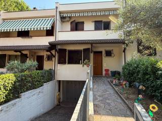 VILLETTA A SCHIERA, in ottime condizioni generali, sita in tranquilla Zona residenziale, una delle più ambite del paese, vicina a tutti i servizi e allo stesso tempo in zona non trafficata, dotata di aria condizionata, infissi in doppio vetro-camera e pvc; disposta su 4 livelli e composta da: Piano Terra - ampio soggiorno con cucina in openspace, bagno e corte privata sul retro; Piano Secondo - 2 camere da letto di cui una matrimoniale con balcone, una singola, studio e bagno principale; Piano Mansardato - ampia e confortevole camera matrimoniale con terrazzo solarium; Piano Seminterrato - triplo garage e lavenderia. €. 350 MILA