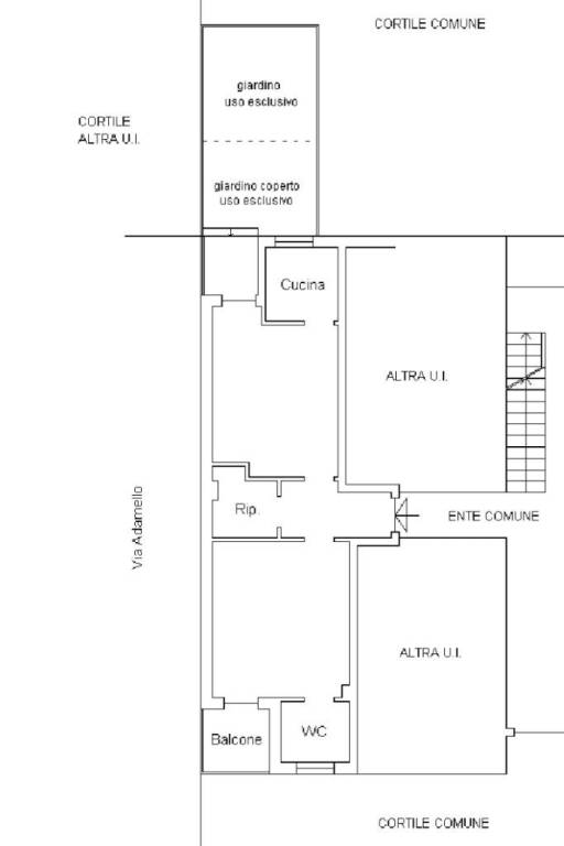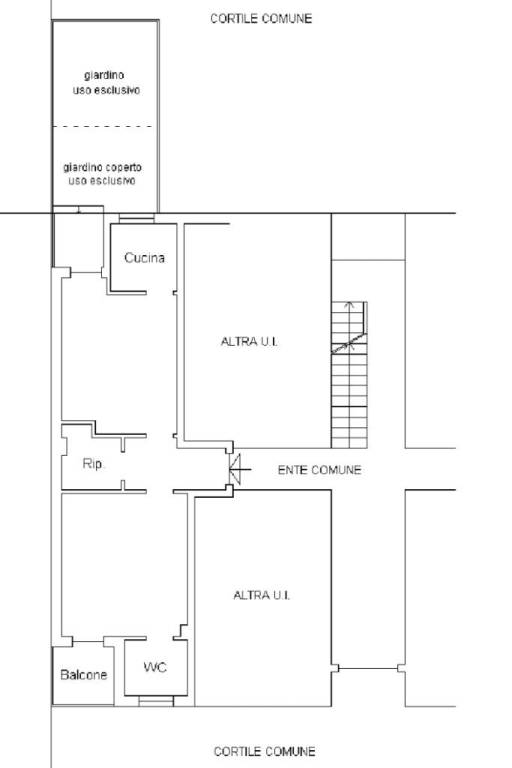 Il bagno con doccia presenta linee pulite e funzionali, e un comodo ripostiglio cieco offre la possibilità di realizzare un secondo bagno, aggiungendo valore e comfort alla proprietà.