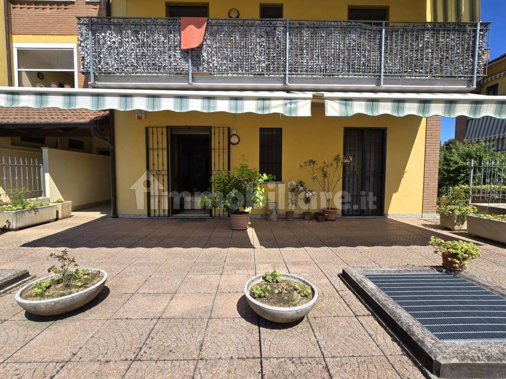 Ampio giardino privato in parte terrazzato, tapparelle elettriche, zanzariere, inferriate e tende da sole.