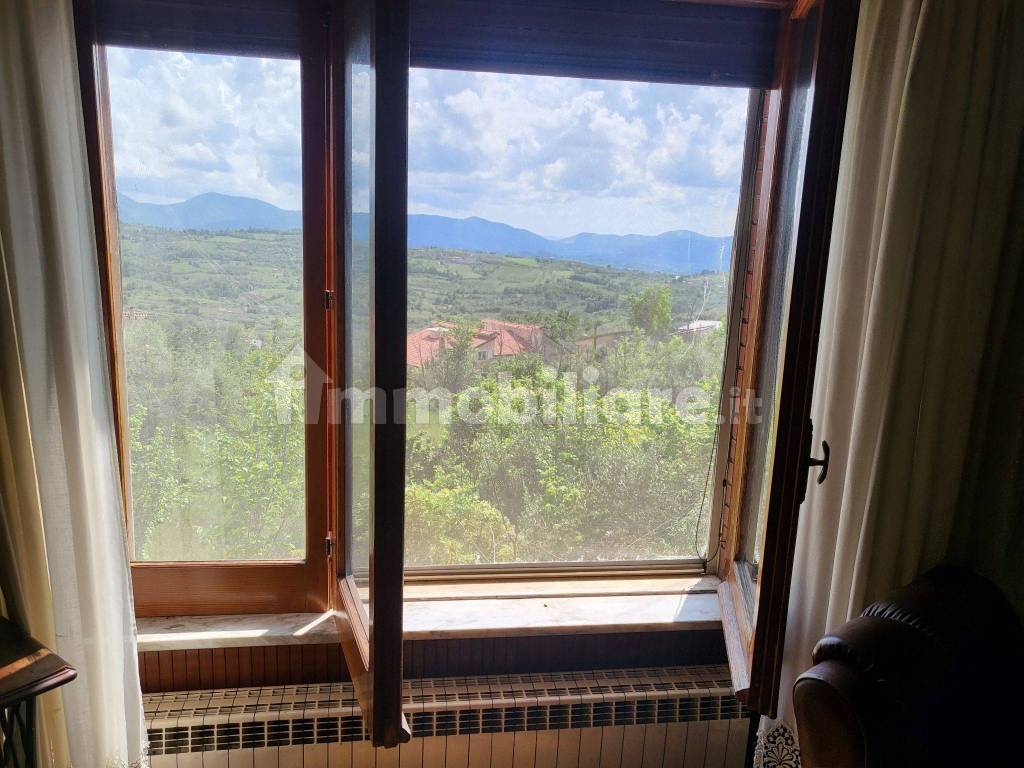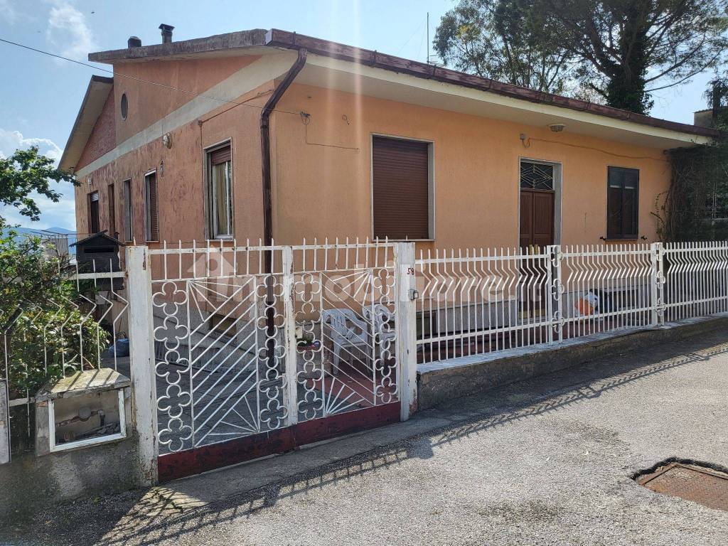 Frasso Telesino, in zona residenziale non lontana dal centro, villetta di ampia metratura, su unico livello, tre camere, cucina, salone, veranda, 2 bagni. piano seminterrato: garage, cantina deposito, cucina rustica con camino e forno, wc da rifare. La zona è riservata e panoramica. giardinetto e spazio esterno.