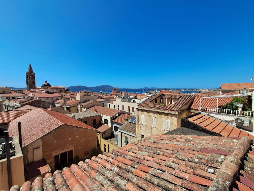 Il vero punto di forza di questa proprietà sono le due terrazze panoramiche. Da qui potrai ammirare una vista spettacolare sui tetti rossi del centro storico, le affascinanti torri campanarie e il blu intenso del mare, con il profilo di Capo Caccia all'orizzonte. Sono il luogo ideale per godersi il sole, organizzare cene con gli amici o semplicemente rilassarsi in un'atmosfera indimenticabile.