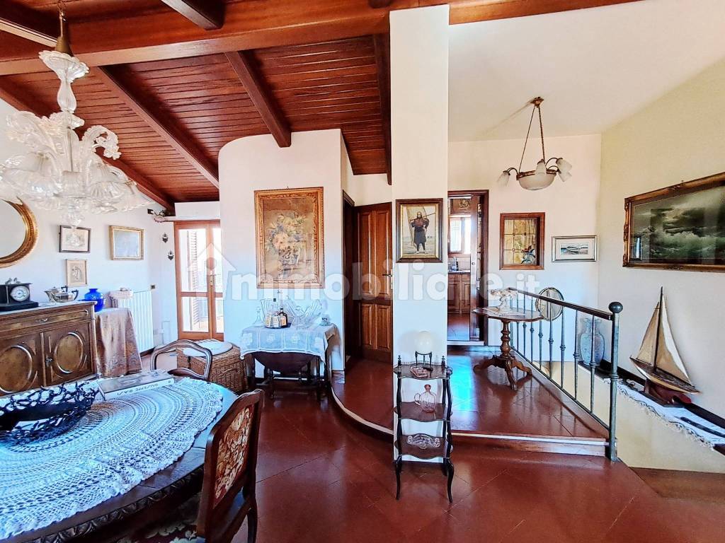 Salendo una scala interna con eleganti gradini in legno e un corrimano in ferro battuto, scoprirai il cuore sociale della casa. Un luminoso salone con pavimento in cotto toscano e un accogliente camino, perfetto per i momenti di relax. La cucina, inclusa nel prezzo, è funzionale e ricca di fascino, con mobili su misura e un piano in granito. Questo piano ha anche un bagno di servizio. I soffitti con travi a vista aggiungono un tocco di calore e autenticità.