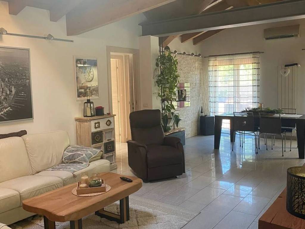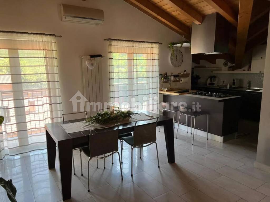 recente costruzione. con ascensore che serve solo l'appartamento, i soffitti sono a vista; dispone di un ingresso che da su un ampio soggiorno, la zona cucina con moderno arredamento su misura (compreso nel prezzo di vendita) e balcone, la camera matrimoniale possiede una cabina armadio attrezzata, ampia camera singola e cameretta. Un bagno dispone vasca, l'altro con doccia e zona lavanderia, rifiniti con materiali di pregio. Completano la proprietà un box al piano seminterrato e una cantina predisposta per creare una eventuale lavanderia.