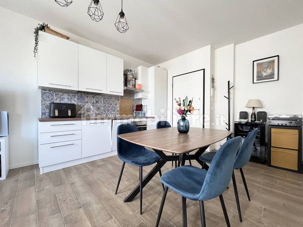 Ingresso direttamente in soggiorno con cucina a vista, camera da letto matrimoniale, antibagno con nicchia lavanderia e servizio. Completa la proprietà un'ampia cantina al piano interrato e la possibilità di parcheggiare all'interno del condominio in uno dei posti auto non assegnati.