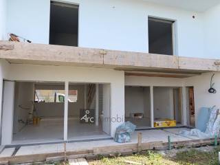 Bifamiliare nuovo di 284 mq con terrazza abitabile di 26 mq, riscaldamento autonomo, ingresso indipendente, composto di ingresso, soggiorno di 37 mq, cucina media abitabile, 3 camere, 1 studio, 3 bagni, 2 poggioli, lavanderia, 1 garage di 32 mq, giardino privato di 277 mq.