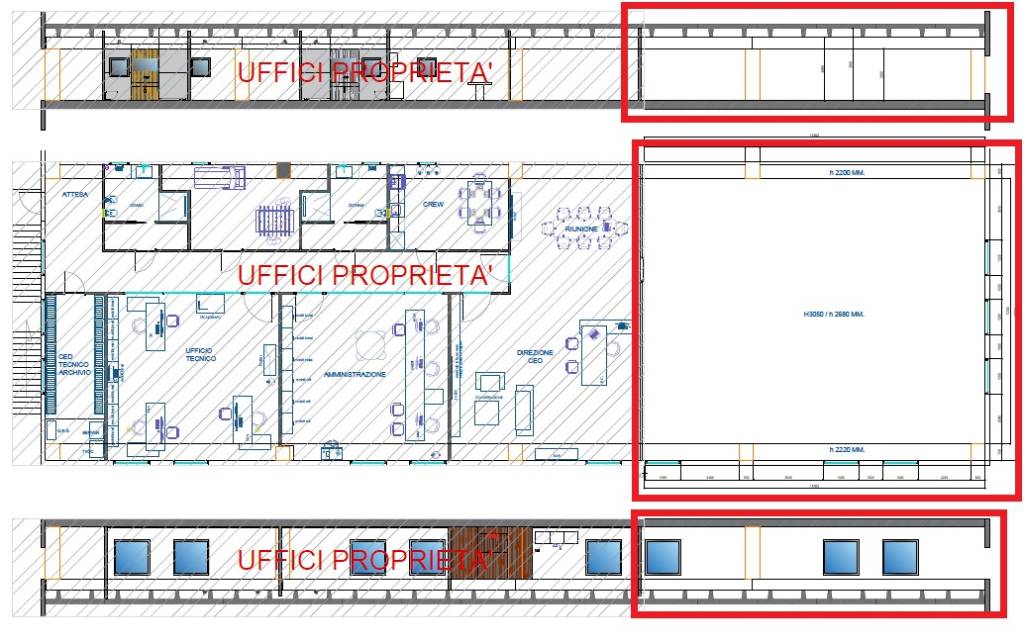 Primo piano soppalcato di circa m² 180, adibiti ad uso uffici, con un’altezza di mt 2,70.
