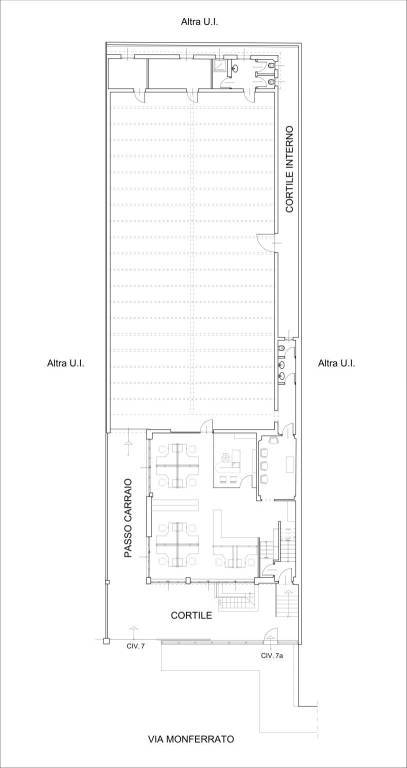 Vendesi capannone ad uso laboratorio con uffici e piano interrato cantinato in Comune di Corsico (MI) - Via Monferrato n. 7 e n. 7A.