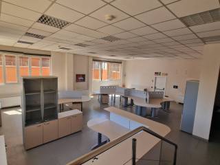 - Piano terreno: cortile di proprietà con posto auto interno con accessi pedonale e carraio dotato di cancello elettrico. Locale open-space ad uso uffici di mq. 120,00 circa con servizio igienico dotato di pavimento galleggiante e di controsoffitto, comunicanti con il capannone ad uso laboratorio ad unica campata senza pilastratura interna con servizi igienici, locali spogliatoio e cortiletto interno.
