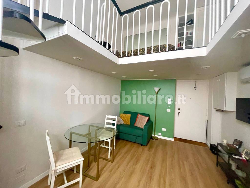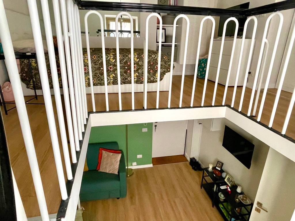 Una scala interna ci conduce all’ampio soppalco dedicato alla zona notte, con un letto matrimoniale e armadiatura; in questo locale è stato ricavato anche un comodo angolo studio/ufficio.