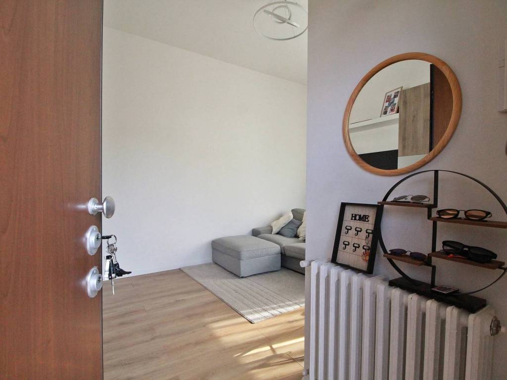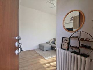Nel centro del paese, in posizione molto tranquilla e al tempo stesso egregiamente collegato con tutti i servizi di prioritaria necessita', singolare tre locali semindipendente con terrazzo, posto al primo ed ultimo piano. La soluzione, termoautonoma, si presenta con un ampio e soleggiato terrazzo che porta nell'appartamento; questo e' contraddistinto da un soggiorno con piacevole angolo cottura, da un funzionale disimpegno che immette nelle due camere, da un grande bagno con box doccia e da uno spazioso ripostiglio. Presente la cantina e un posto auto in uso esclusivo, nonche' i condizionatori nella zona giorno e nella zona notte. L'immobile, vista la tripla esposizione, e' molto luminoso e ha spazi ben organizzati; si avvale, inoltre, di una recente ristrutturazione. Di particolare rilievo e' il terrazzo, vivibile e panoramico, che ben si presta a momenti di convivialita'. Molto contenute le spese condominiali. Il prezzo e' comprensivo dell' arredamento