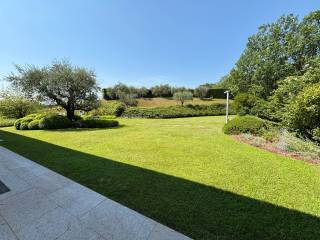 La villa in bifamiliare, posta sulla cima della collina, ha a disposizione un ingresso padronale tramite viale, dal quale si accede all'immobile con la sensazione di assoluta dominanza, una vista panoramica sulla città e sul verde privato, per i vostri pranzi o cene all'aperto.