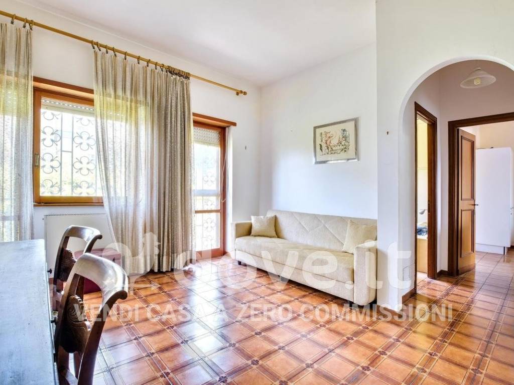La zona living con un ripostiglio di circa 9 mq separata dalla zona notte, dal bagno e dalla cucina da un piccolo disimpegno. Un'ampia camera da letto, un bagno con finestra e cucina ampia e vivibile con uscita sulla terrazza di circa 25 mq, che a sua volta si affaccia sul Parco Condominiale e sul campo da tennis.