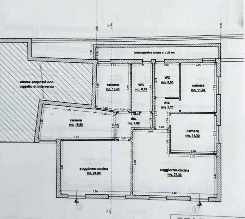 Versione 2: Prevede la realizzazione di quattro unità immobiliari (due per piano) di trilocali con metratura maggiore rispetto alla versione precedente.