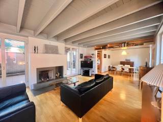 - Parquet in faggio e travi a vista in legno nella zona giorno