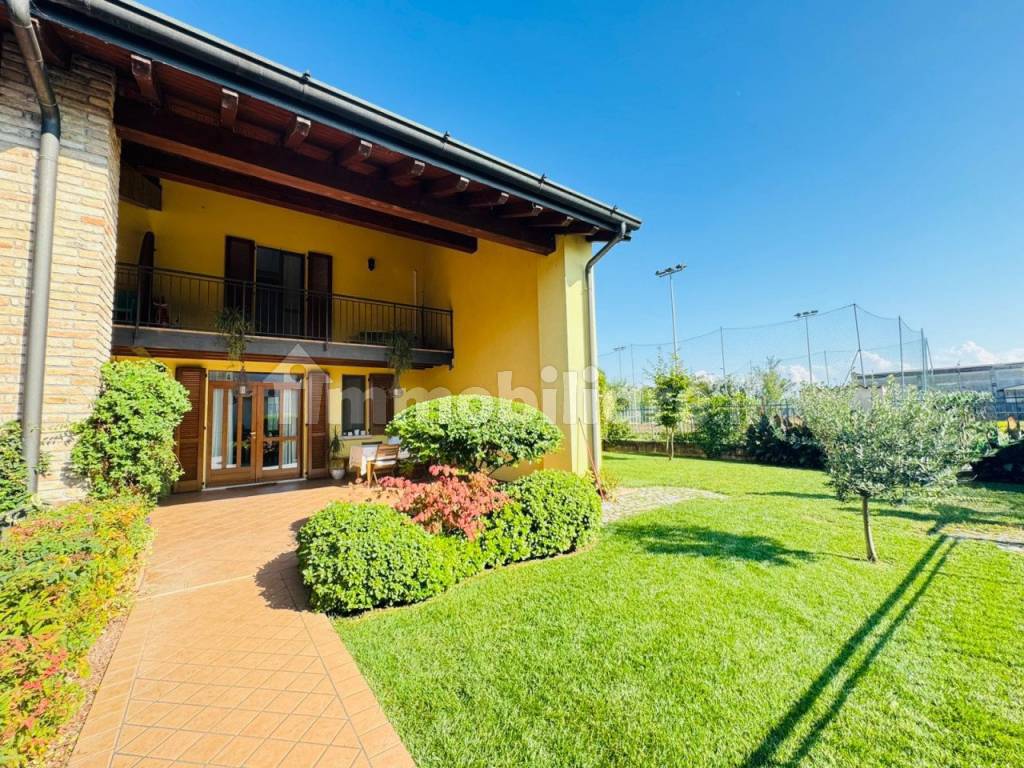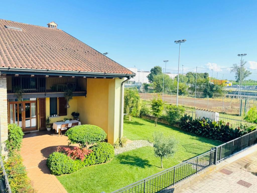 In contesto esclusivo proponiamo introvabile villa di testa . L'immobile è così composto al piano terra ampio Portico di circa 35 metri quadri(ideale per piacevoli momenti di relax) soggiorno con travi a vista cucina separata bagno lavanderia . Al piano primo due camere e uno splendido bagno padronale al piano secondo ambiente ideale dove poter realizzare una terza cameretta .Completa la proprietà l'ampio giardino di circa 250 metri quadri il garage doppio e un posto auto coperto .