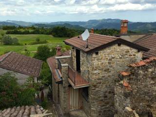 Salendo le scale in pietra, si accede al primo piano, qui si trovano anche una camera da letto, dotata di balcone che si affaccia sulle colline circostanti, e una cucina abitabile, che conserva il sapore autentico delle case di campagna con travi a vista.
