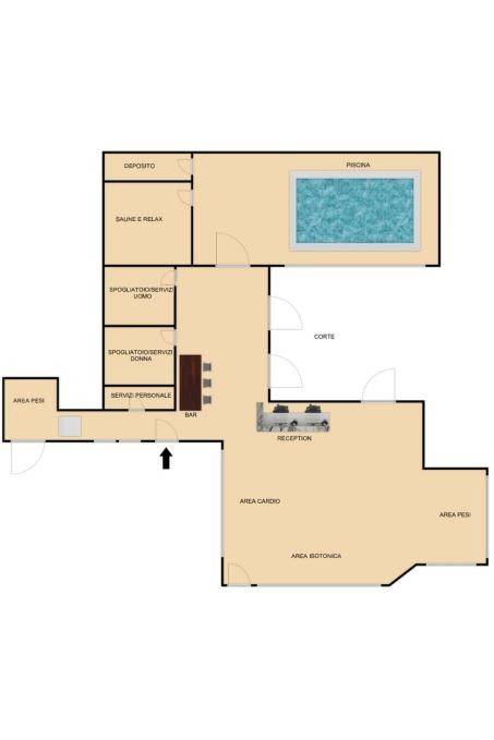 La palestra si sviluppa su una superficie complessiva di circa 570 mq, organizzata in più ambienti funzionali: ampia sala pesi, zone per corsi e attività, reception e spazi di servizio. Sono presenti cinque bagni completi, oltre agli spogliatoi per uomini e donne, progettati per garantire comfort e praticità agli iscritti.