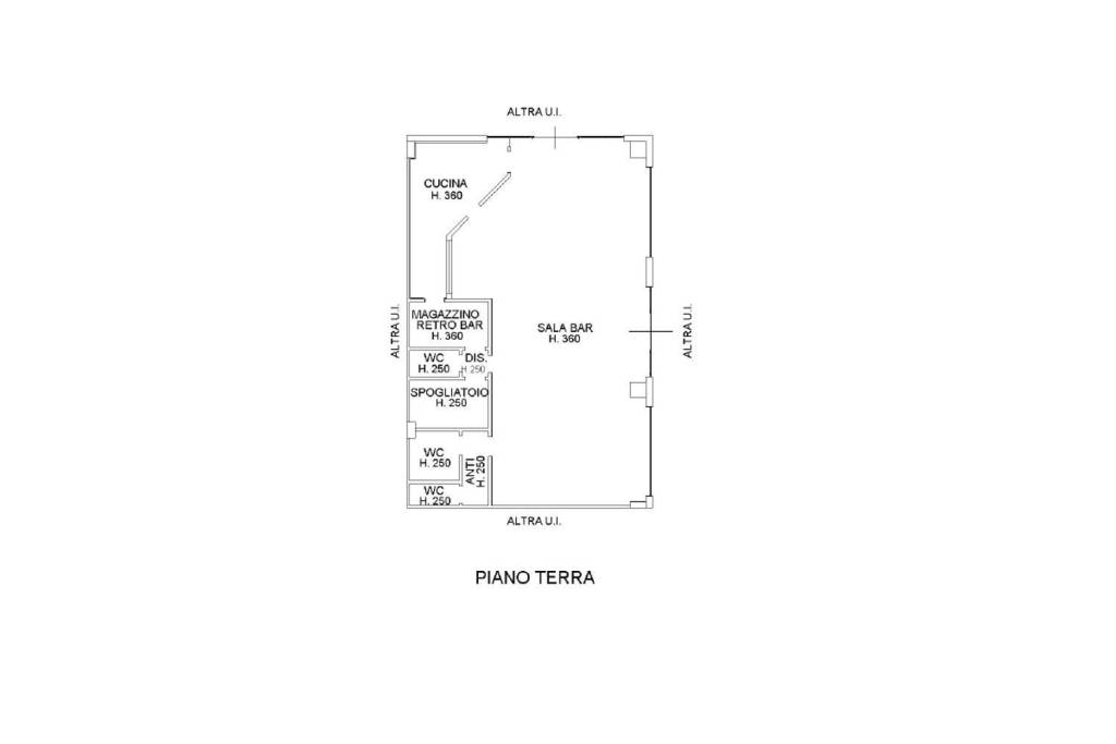 L'immobile è costituito da sala bar, cucina, magazzino deposito e servizi igienici.