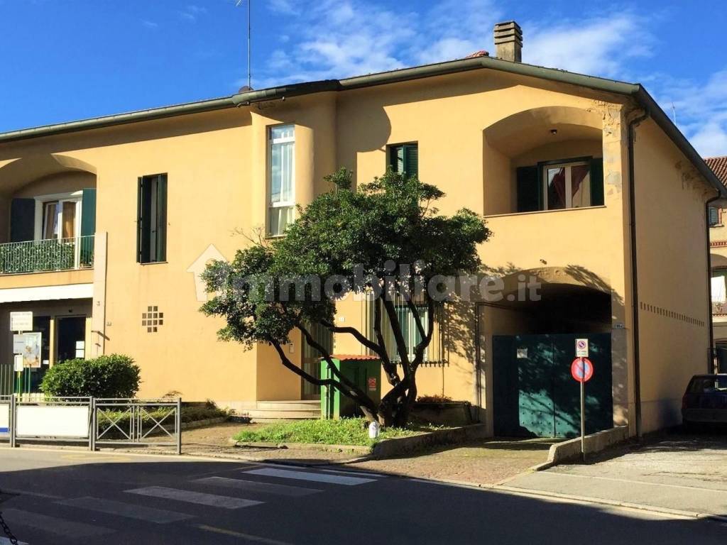 La porzione immobiliare è inserita in un piccolo edificio ad uso residenziale ed è composta da: salone, archivio, uffici, servizi e locali tecnici al piano terra; cantine e centrale termica al piano interrato. Ottimo stato manutentivo.