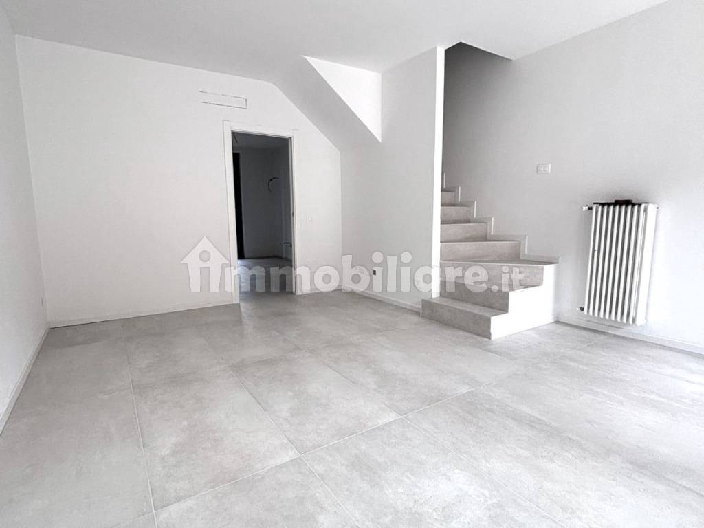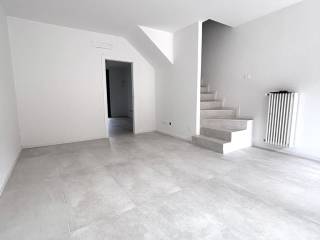 SETTALA centro; in prossimità della piazza centrale, ottima villa a schiera disposta su due livelli oltre mansarda, composta da: ingresso dal giardino privato che ci porta direttamente in soggiorno, cucina abitabile con ripostiglio/dispensa e con accesso al portico e la seconda porzione di giardino, disimpegno, bagno e antibagno adibito a lavanderia; al primo piano troviamo la zona notte composta da due comode camere da letto, ognuna delle quali ha accesso ad ampi balconi, disimpegno da poter adibire a guardaroba, antibagno e bagno padronale; al piano superiore versatile mansarda, rifinita con travi a vista in legno, da poter sfruttare con due ampi locali. Soluzione appena ultimata con eccellenti rifiniture in stile moderno e dotato di impianto solare termico per la produzione di acqua calda, predisposizione per i climatizzatori, videocitofono e zanzariere. Immobile mai abitato e disponibile da subito. Comprensivo di box e cantina.