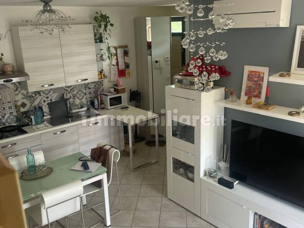 Cesenatico: vicino al quartiere Madonnina in Via Selene, recente palazzina con formula residence (ogni appartamento ha il suo ingresso indipendente), grazioso appartamento arredato al piano primo composta da: ingresso, antibagno, bagno, soggiorno con angolo cottura e balcone; collegato da scala altro bagno, ampio disimpegno (2°camera) e camera da letto matrimoniale.