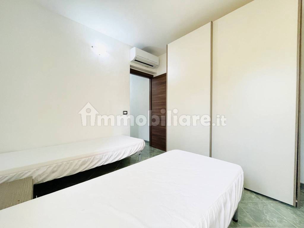 La sistemazione è composta da zona giorno con angolo cottura e Ampie Vetrate, camera matrimoniale, camera doppia con sistemazioni singole componibili, bagno con box doccia, ampia Veranda Coperta munita di moderna