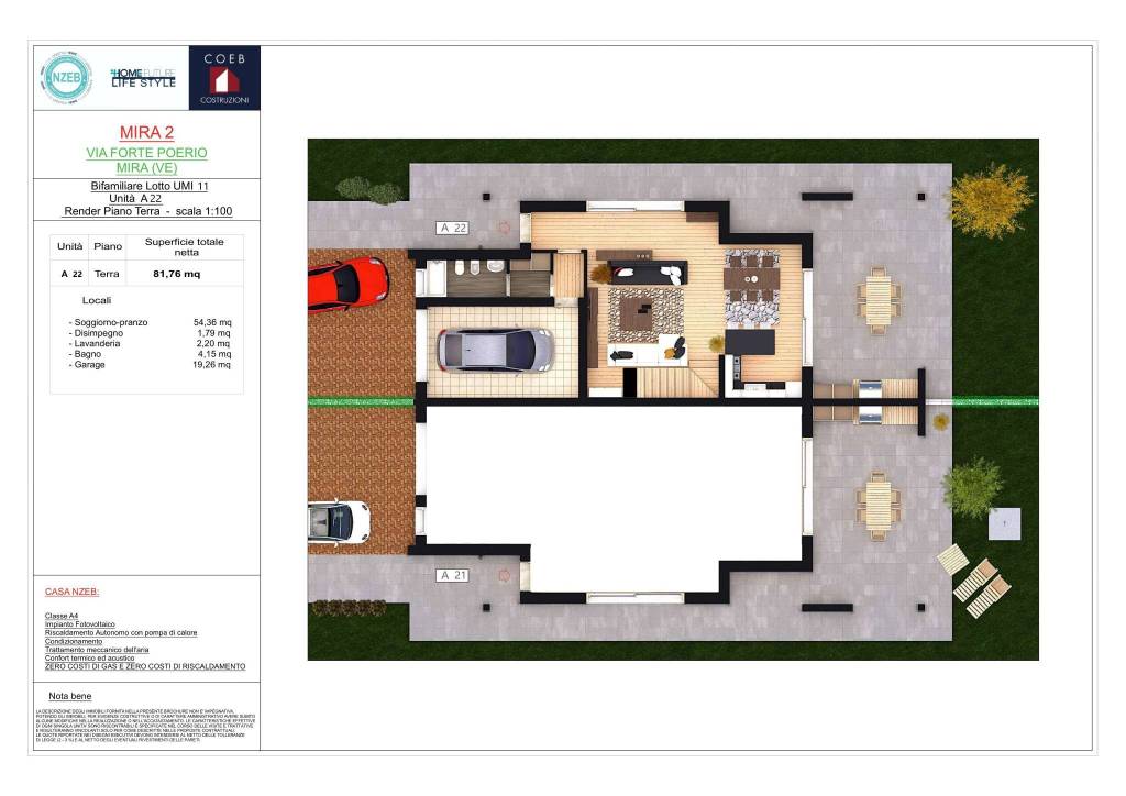PER INFO CONTATTARE 3462330676 - (LOTTO 11, UNITA' 22) MIRA: Proponiamo in nostra esclusiva di vendita moderna bifamiliare di testa sviluppata su 2 livelli con giardino privato di 500 mq e porticato di 27 mq.