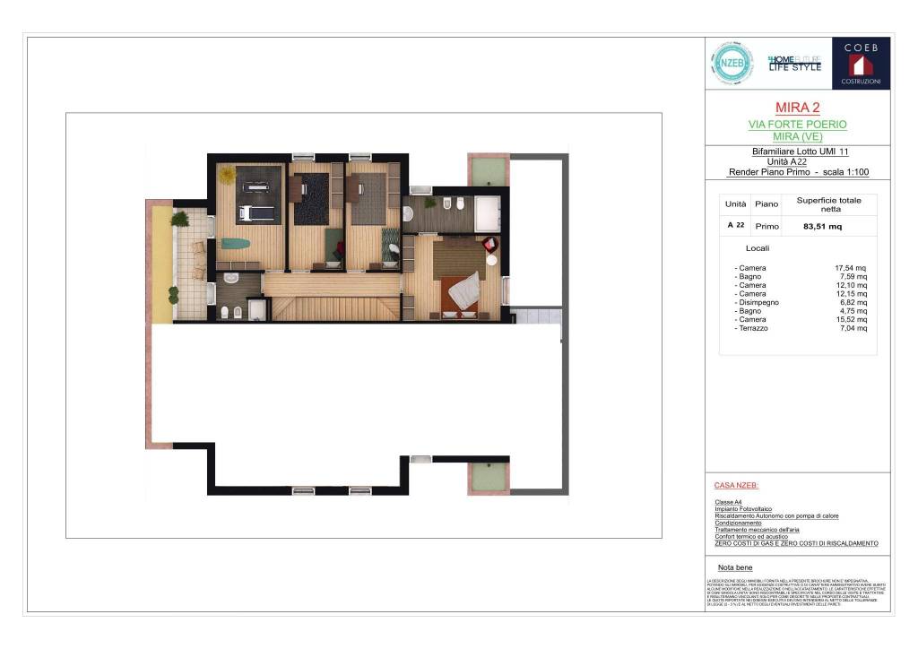 Caratteristiche/finiture: classe energetica A4, moderne tecniche realizzative, impianti di ultima generazione abbinati a domotica.