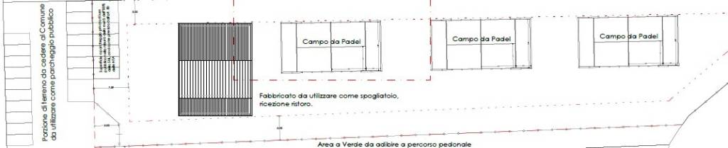 Il progetto prevede: 3 campi da padel di nuova generazione; 200 mq edificabili destinati a ristoro e spogliatoi, perfetti per accogliere atleti e visitatori; 50 mq di tettoia per area coperta aggiuntiva; 70 mq adibiti a parcheggio, a servizio degli utenti.