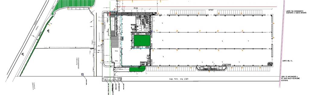 CAPANNONE MQ 15600 A ISSO ADIACENTE BREBEMI - Disponibilità di immobile industriale sito nel comune di Isso (BG) di mq 15600 circa composto da area produttiva o di stoccaggio di mq 9800, spogliatoi e servizi mq 390, uffici al rustico mq 3200 disposti su due livelli, autorimessa mq 2200 sita al piano interrato, parcheggio esterno privato e recintato mq 2800, cotile privato per manovra mezzi mq 7000 c.a.