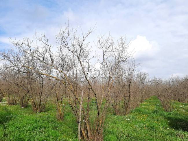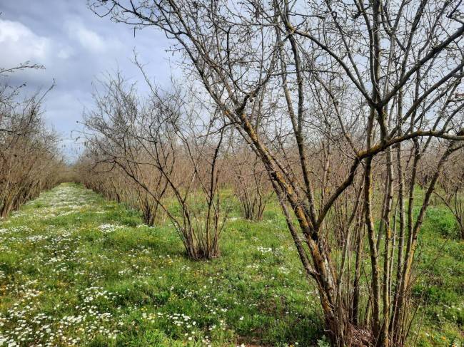 Il terreno è coltivato a noccioleto.