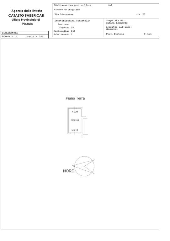 buggiano – nella frazione di borgo a buggiano, in ottima posizione, vicino a tutti i servizi, disponiamo di un fondo attualmente destinato a laboratorio posto al piano terra di un edificio bifamiliare. il fondo di circa mq. 140 si compone di quattro locali oltre a ufficio, w.c e tettoia. a corredo della proprietà in aderenza al corpo principale troviamo la rimessa di circa mq. 19; il ripostiglio di circa mq. 15 e la resede/giardino ad uso esclusivo che gira su tre lati del fondo di circa mq. 210.
